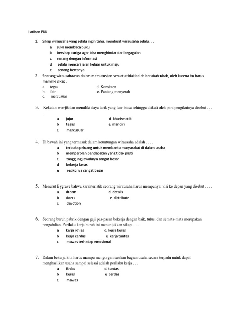 Contoh Soal Dan Jawaban Pkk Tentang Sikap Dan Perilaku Wirausaha Balfit Blog