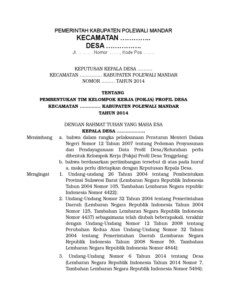 Keputusan Kepala Desa Ttg Penunjukkan Tim Pokja Penyusun Apb Desa
